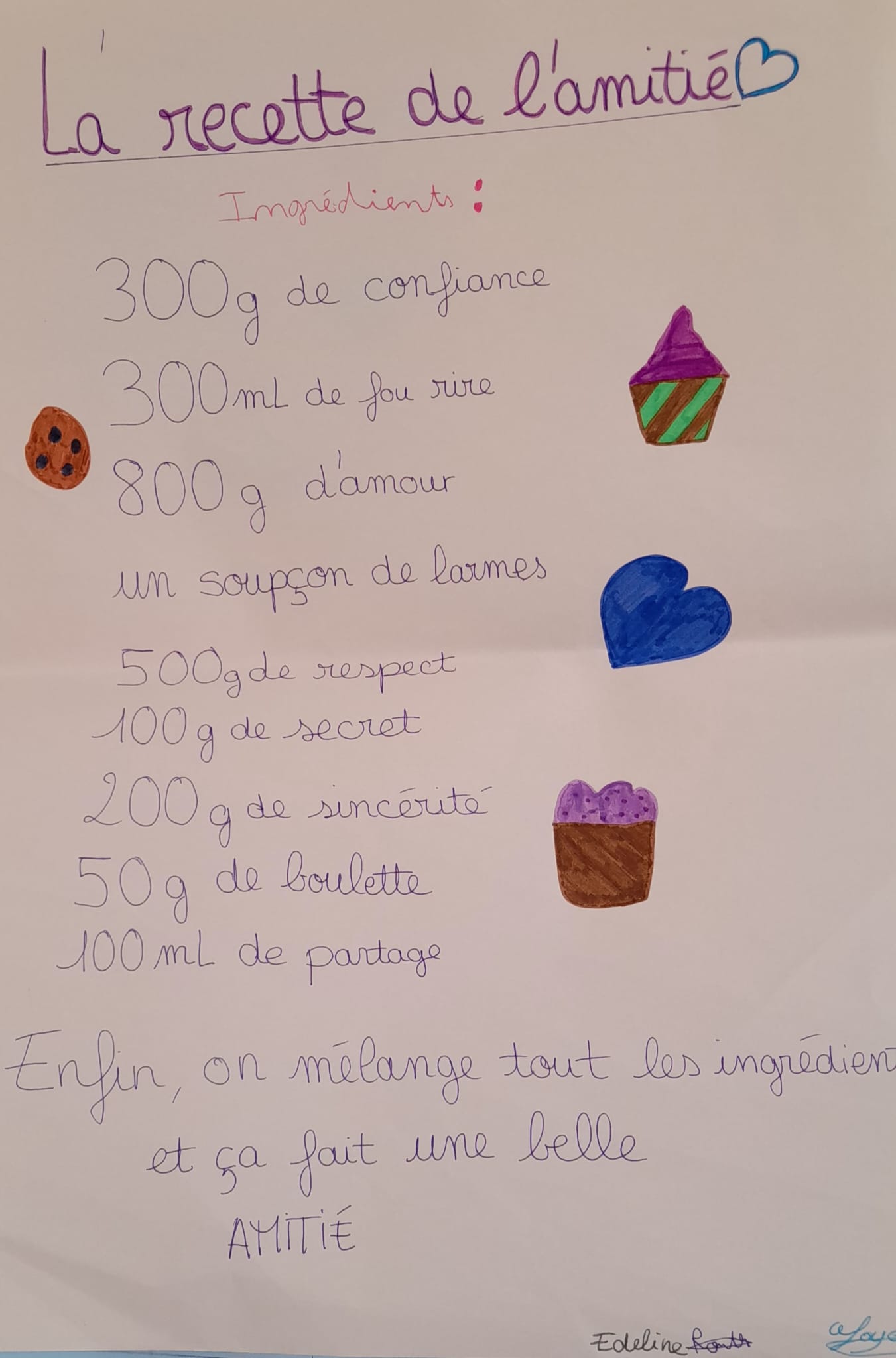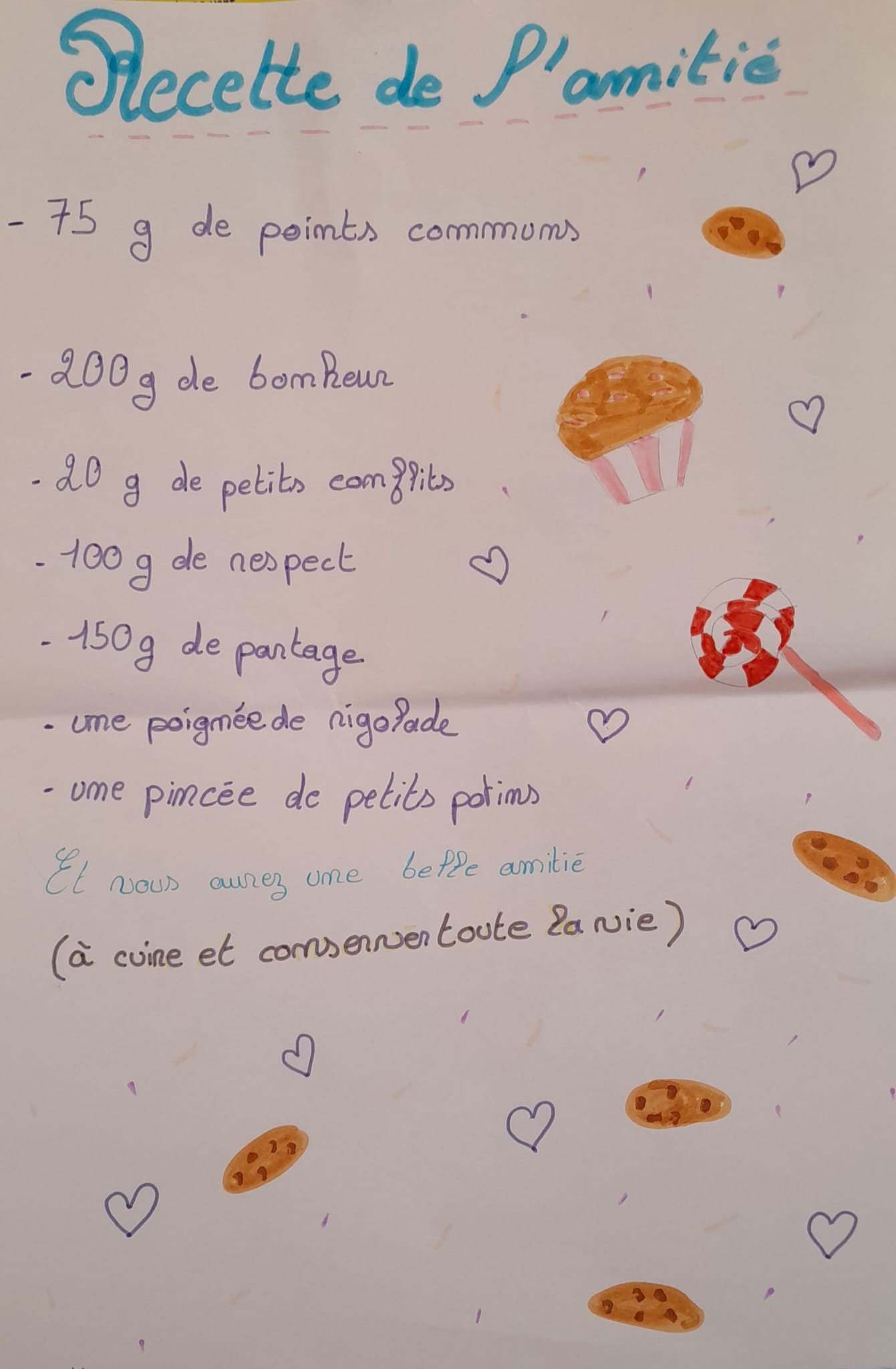 Puis par binôme, on réalise une affiche sur « la recette de l’amitié ».