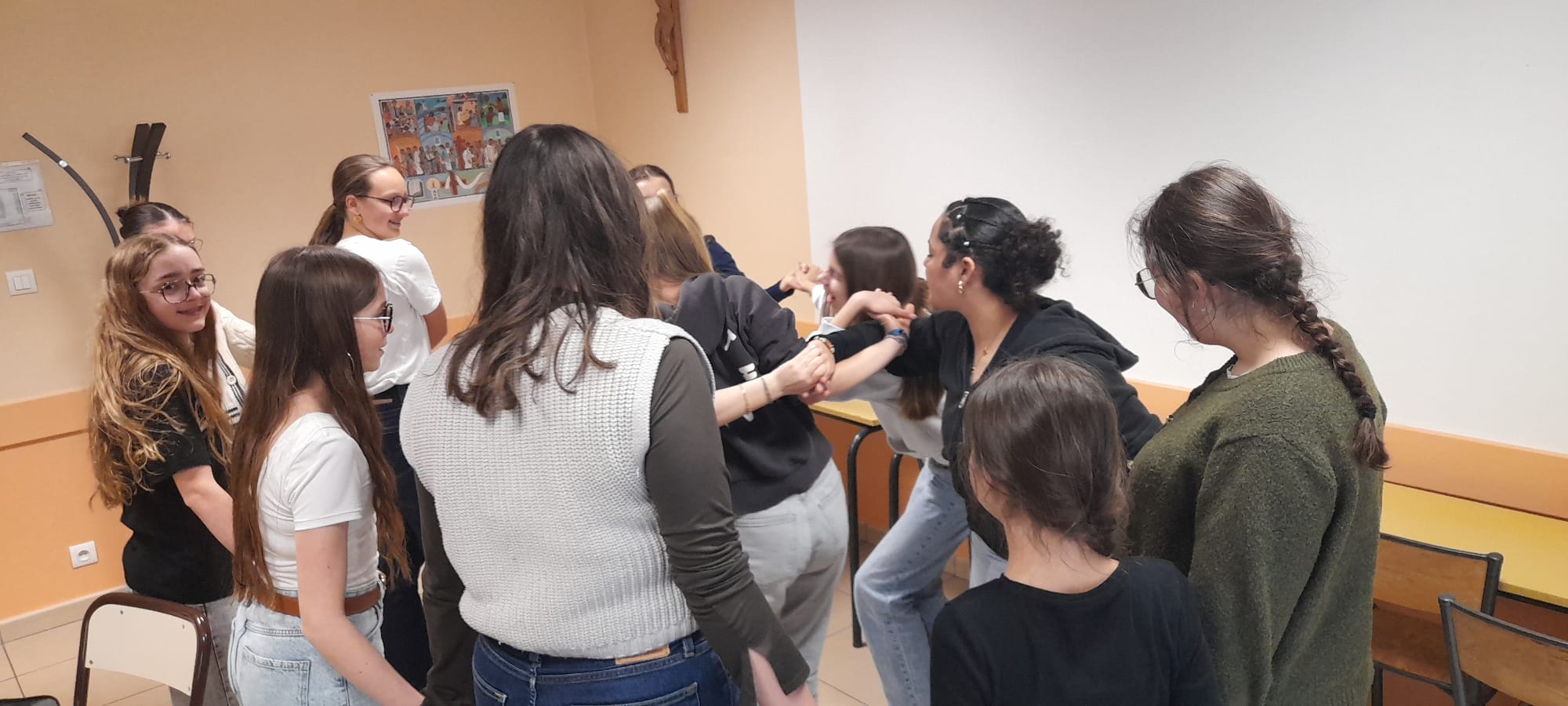 Mardi 24 mars, 10 jeunes filles de 4ème des collèges St Jean (9) et de la Vallée du Lys (1) se sont retrouvées à la maison paroissiale pour leur 4ème soirée ADOS 4ème.