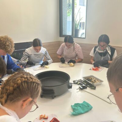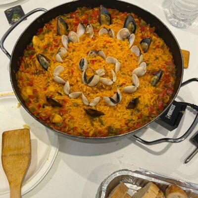 Puis, atelier paella : Encadrés par des professionnels, préparation de ce plat traditionnel espagnol à base de riz, de légumes, de viande ou de fruits de mer et dégustation.