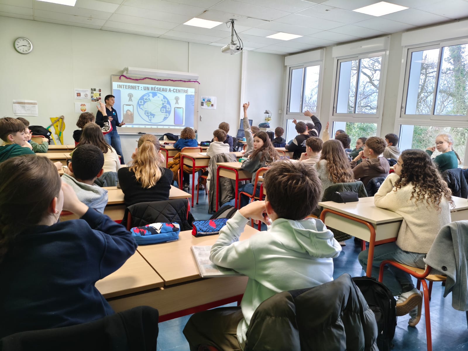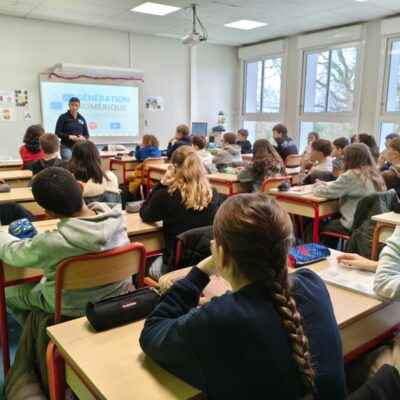 Jeudi 15 Janvier, les élèves de 5ème ont eu une intervention de l’association  » génération numérique ». pour les sensibiliser aux enjeux et aux risques d’internet, des réseaux sociaux et des écrans et les impacts sur la santé mentale.